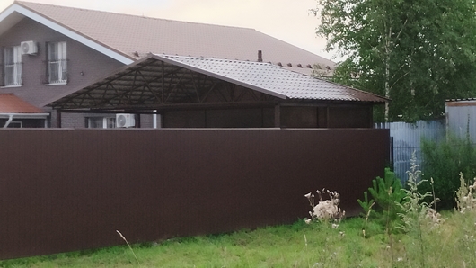 Двускатный коричневый навес из металлочерепицы Арт-657