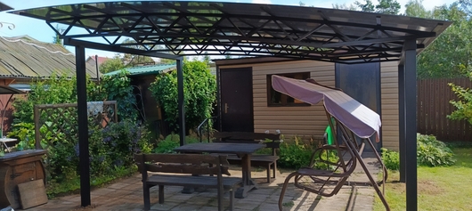 Полуарочный навес из поликарбоната для зоны отдыха на даче Арт-671