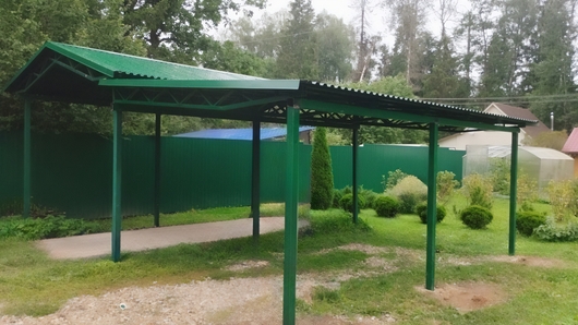 Навес двускатный + односкатный с крышей из профлиста зеленого цвета Арт-710