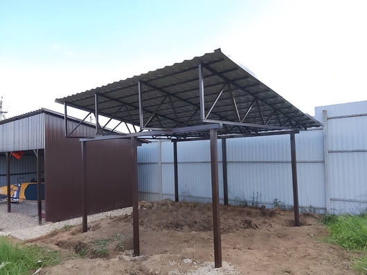 Навес односкатный с крышей из профнастила для дачного дома Арт-736
